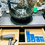 - ❓Is there a kitchen available at the apartment for guest use?Yes, the apartment is furnished with a kitchenette and offers an electric kettle, a toaster, and glassware as well.